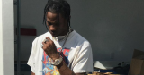Travis was joined by Kylie Jenner as he watched his Rockets take a 2-0 series lead over the Minnesota Timberwolves. On-foot, the rapper wore the "Cactus Jack" Air Jordan 4s, which, according to an Instagram post from Scott's DJ Chase B, may take their light blue shade from the colors of the former Houston Oilers.