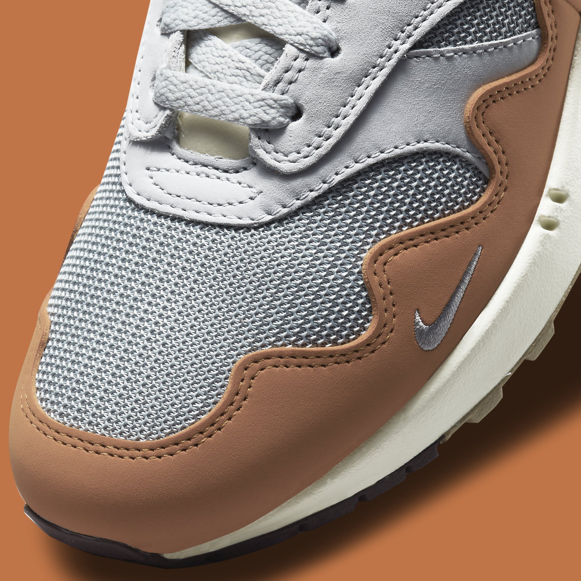 UPDATE (07/22/22): Hot on the heels of last week’s leaks of the white and grey colorway, another unreleased iteration of the Patta x Nike Air Max 1 has emerged. Official Nike product images of the new brown-based makeup of the collab, which possibly indicates that the release is happening soon. Check back soon for official updates.